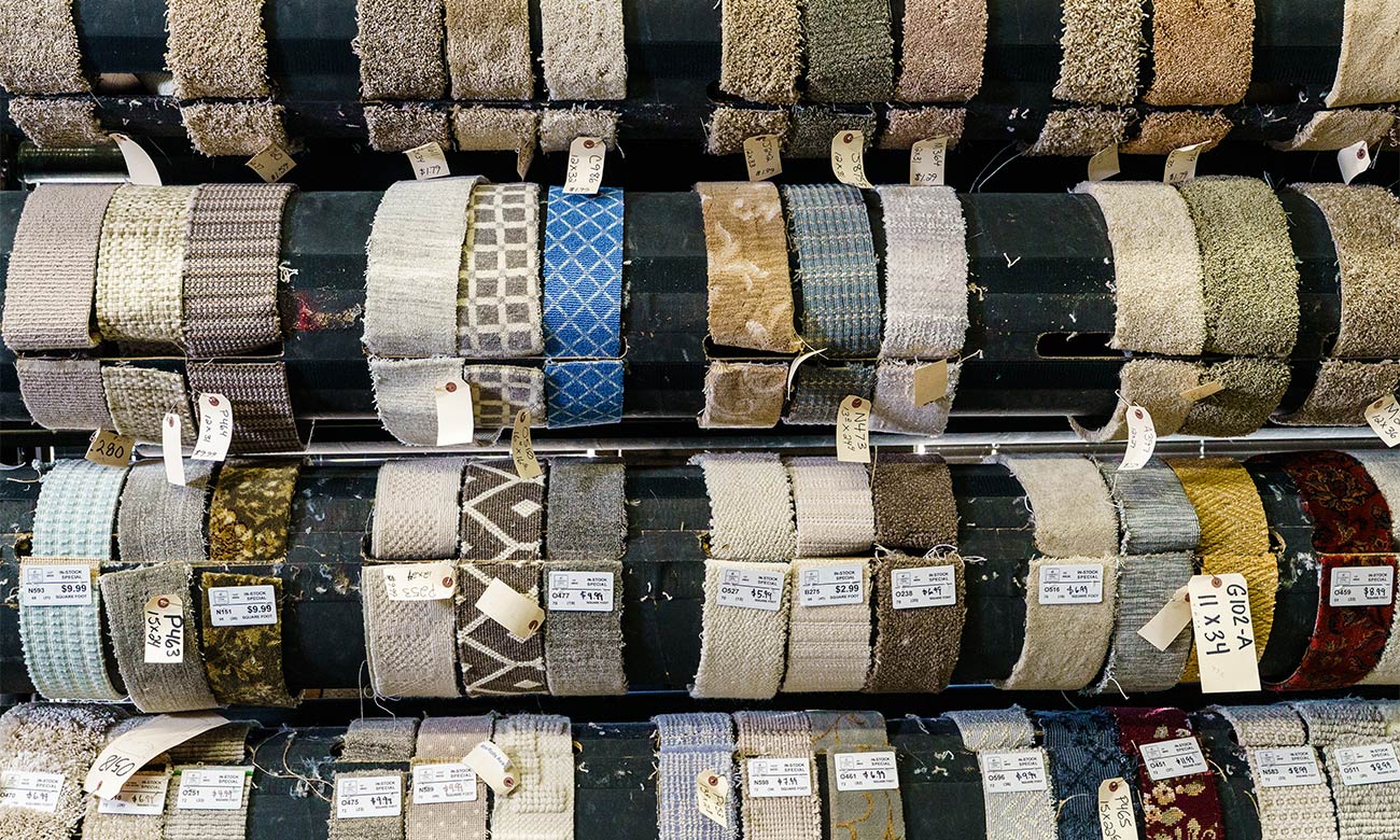 Browse over 1,000 in-stock rolls that will cover one bedroom up to an entire basement or second floor. Our remnant room offers thousands of rolls that can be made into custom sized area rugs, installed as wall to wall carpet or made into stair runners.